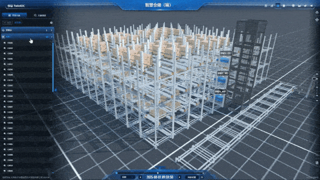 应用的核心是一个1:1精准复刻现实仓储环境的三维虚拟场景。在这里,每一个货架、每一条巷道、每一台设备都拥有了自己的数字身份: