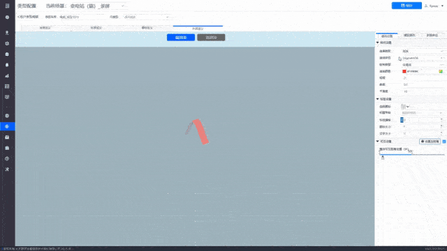 对于巡检机器人 与 通讯基站 间的通讯效果,基于孪易 IOC 平台的通讯链路元类型配置,配置属性字段,以动态光效连线呈现机器人与通讯基站的交互状态,实时显示巡检机器人采集数据的传输路径,从采集端到处理端的完整轨迹清晰可见。