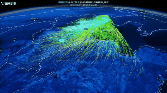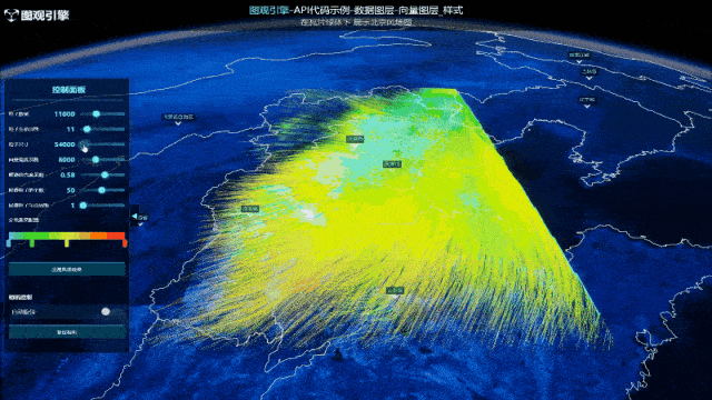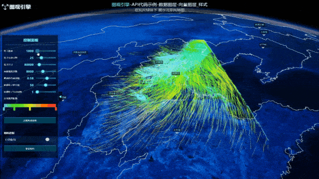 我们的解决方案是大范围坐标系精准映射技术:把风场的向量场数据,和瓦片地球的地理坐标做了 “毫米级对齐”—— 每一个粒子的经纬度、高程,都能精准对应到实际的地理区域。