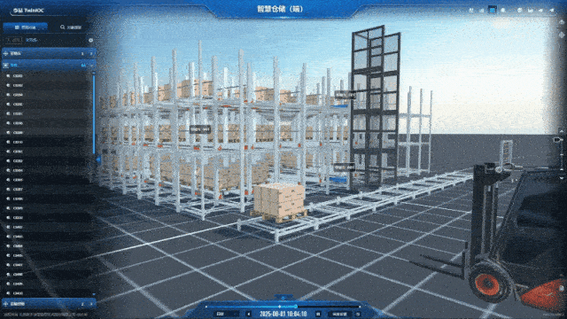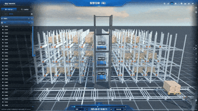 应用的核心是一个1:1精准复刻现实仓储环境的三维虚拟场景。在这里,每一个货架、每一条巷道、每一台设备都拥有了自己的数字身份: