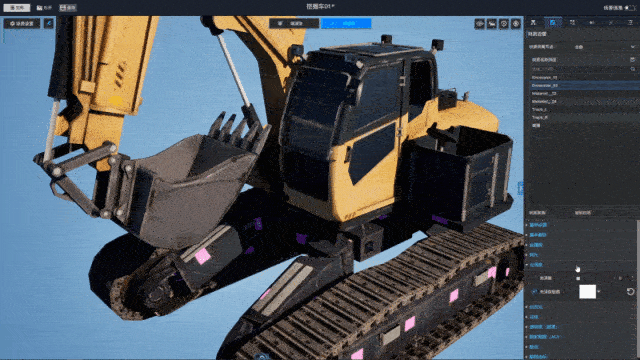 以下,我们以“挖掘机数字孪生模型”的全流程制作为例,拆解 图观模型编辑器 如何将一台静态挖掘机模型,变成可交互、可仿真、可数据联动的“数字工程设备”。