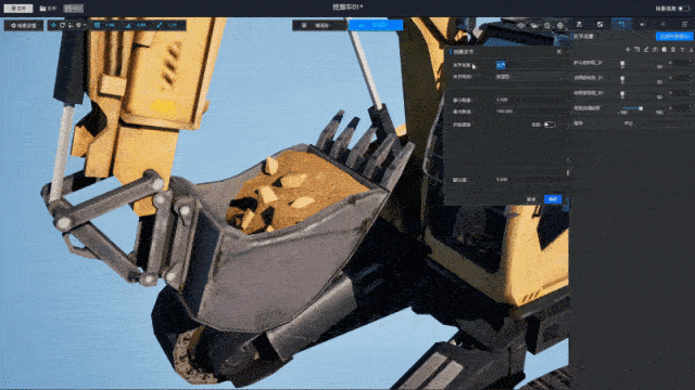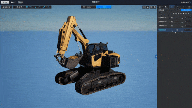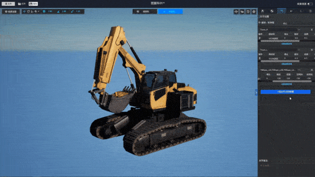 通过以上关节配置,挖掘机模型已具备“数据驱动的动态控制能力”——外部系统只需传入简单的数值、枚举或布尔参数,即可让模型完成“动作执行-状态切换-效果展示”的全流程响应。