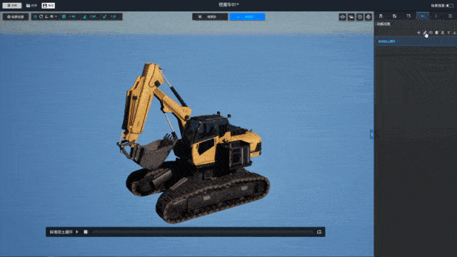 在挖掘机案例中,我们制作了“标准挖土循环”动画,完整模拟工程作业中的“挖掘-转运-倾倒”流程。通过动画编辑,挖掘机模型不再是孤立的部件组合,而是能模拟真实作业逻辑的“数字设备”,可直接用于工程培训、作业流程仿真等场景。