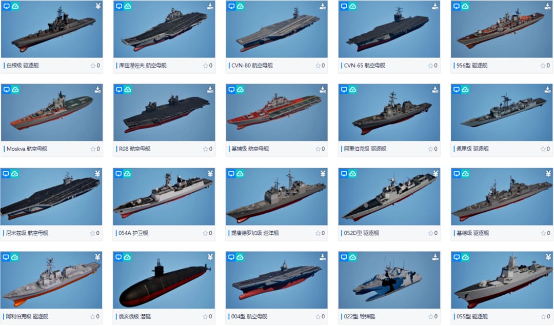 基于模型编辑器,我们制作了航母、战斗机、巡航舰、护卫舰等精细化模型。