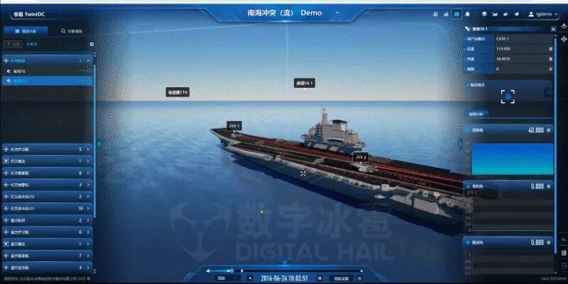 孪易 IOC 能够将航母、舰载机、巡洋舰等数十类模型整合为有机整体,具备“想定编辑-推演执行-结果评估”全流程能力,支持用户以“拖拽式操作”完成复杂战术推演,成为军事决策的 "数字沙盘"。