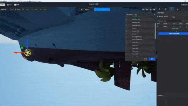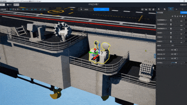 更重要的是,我们运用模型编辑器对航母上的各类关键功能装置进行了深度的关节编辑与数据驱动接口预置,使其从一座静态的钢铁巨岛变为一个可动态响应的智能孪生体: