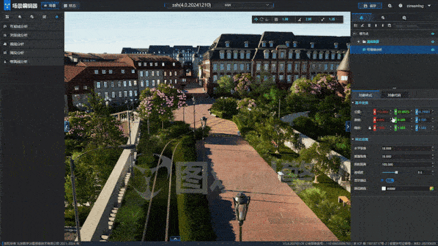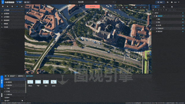 核心革新:图观 场景服务编辑器 直击三维场景交付后最大的运维痛点——修改调整。开发者或最终用户无需理解场景底层代码和打包流程,直接通过浏览器即可对已发布的流渲染场景进行实时编辑。无论是调整模型摆放位置、更换材质效果,还是新增空间测量、可视域分析等交互功能,都能实现分钟级的更新与发布。这样的效率提升不仅仅体现在时间上,更降低了数字孪生系统的维护成本,使其能够更灵活地适应物理世界的动态变化。