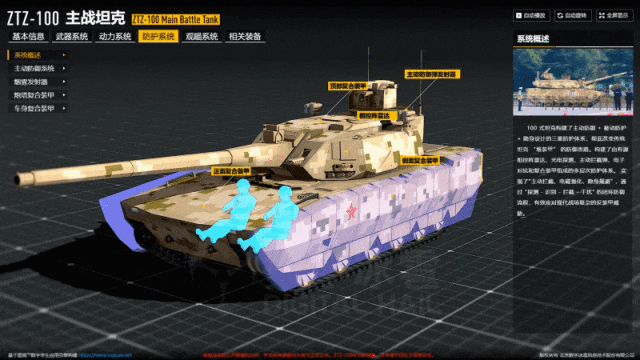 ZTZ-100 主战坦克 的防护理念超越了传统的“堆砌装甲”,构建了“主动拦截、被动抵御、隐身规避”三位一体的综合防御体系。