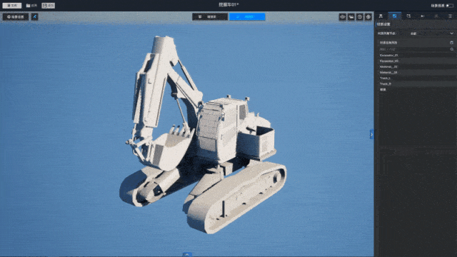 - 动画编辑:关节时间线动画,网格动画,动画状态机(待机/报警等)。