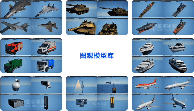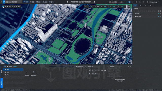 - 场景构建:模型、GIS、画刷、建筑、城市等对象组合。