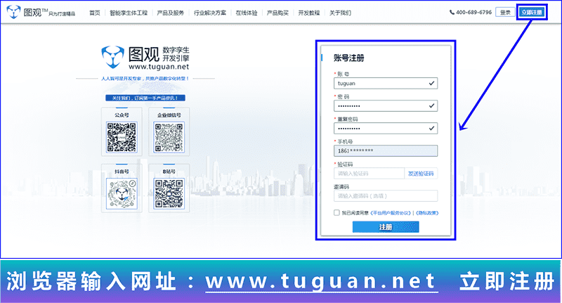 在浏览器中输入网址 www.tuguan.net,注册图观,免费体验图观公有云标准版,可获取图观最新产品介绍以及全面的开发指引。现在注册,还可免费获得: