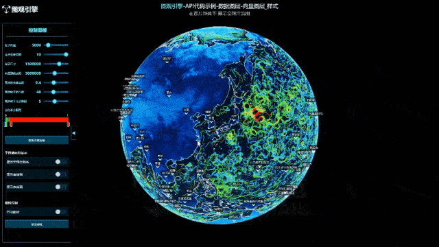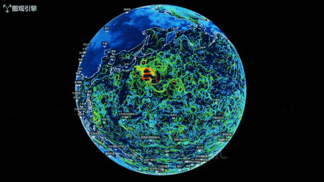 全球洋流的经纬度跨度达 - 180°~180°、-80°~90°,要在三维瓦片地图上精准贴合,就像给地球 “穿衣服”—— 不仅要合身,还要能跟着地球自转、缩放自适应。我们的系统支持大范围坐标系动态适配,从南极冰盖到赤道暖流,每一道粒子轨迹都能与真实地理位置精准对齐。
