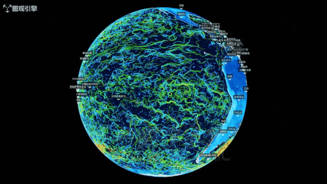 在三维数字地球表面,不计其数的发光粒子循着洋流轨迹奔腾穿梭——从北大西洋涡旋的回旋缠绕,到南极绕极流的绵延浩荡,再到深海底层流的隐秘流动,原本藏在数据深处的全球洋流,终以全维度、实时态的形式完整“显形”。